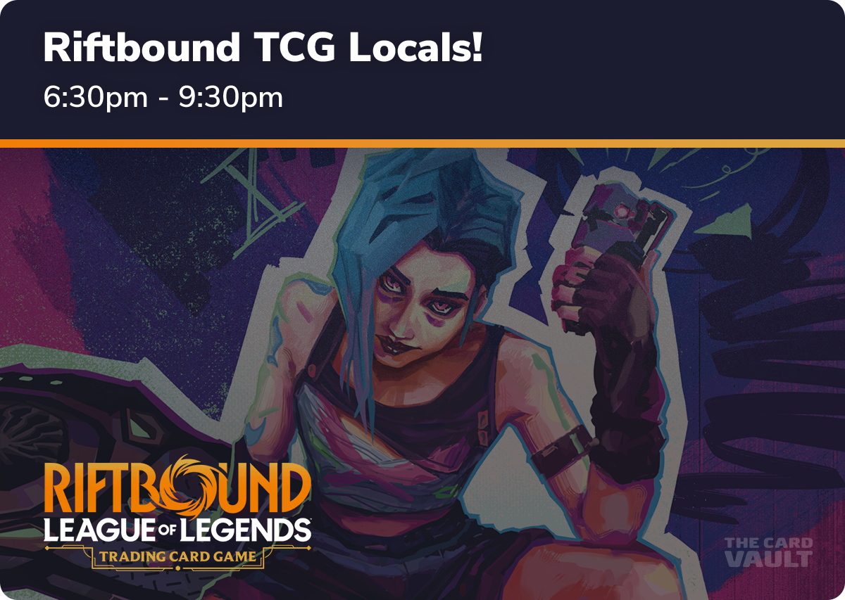 Join us for our weekly Riftbound: League of Legends TCG Locals, a relaxed and friendly way to enjoy Riftbound in person at our Gaming Centre.